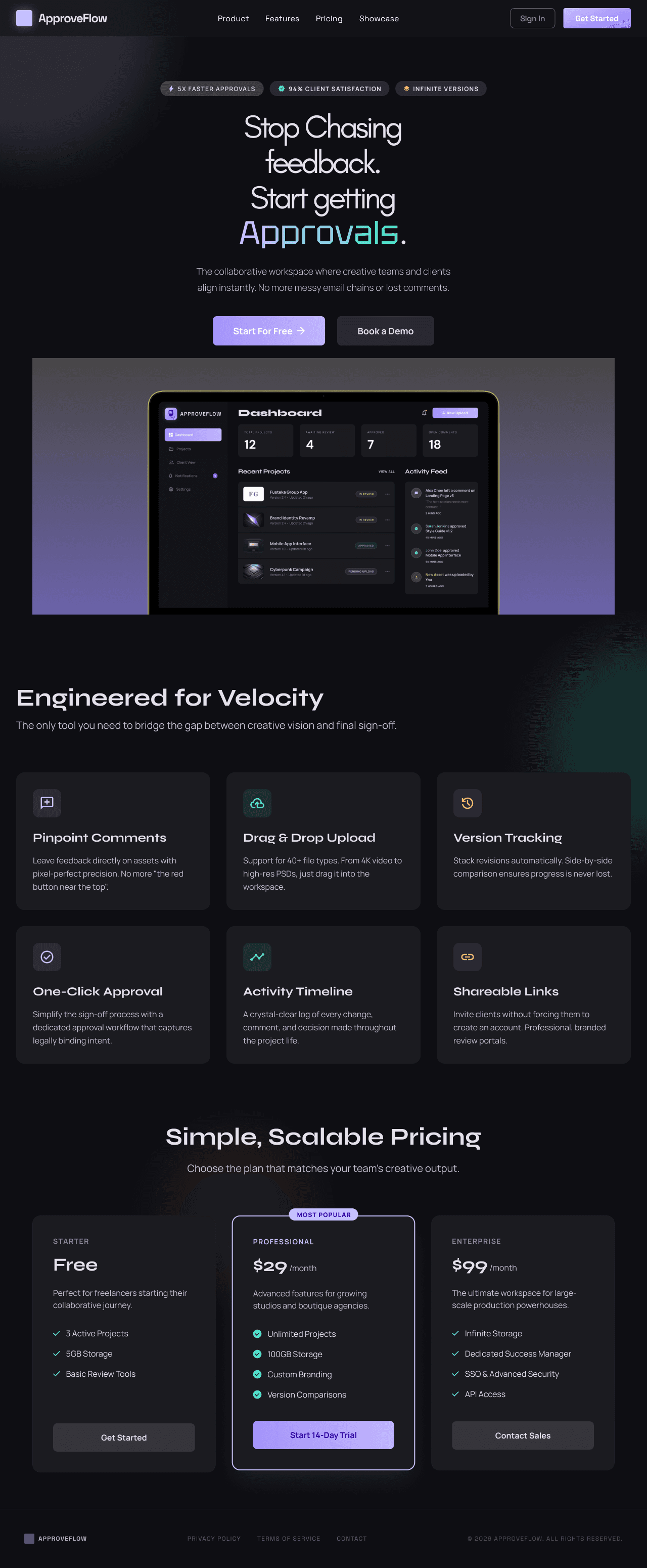 Every freelance designer knows the drill. You send a design over email. The client replies three days later with "can you change the thing on the left?" You go back and forth five times trying to figure out what "the thing" is. There's no version history, no approval record, and no clarity on whether the project is actually done. ApproveFlow eliminates all of that.